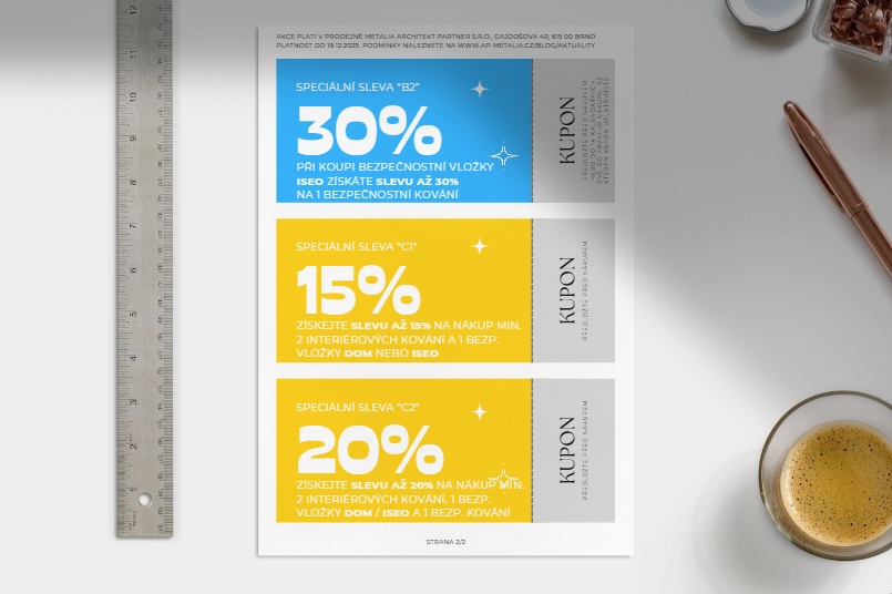 C2 – sleva 20% na celý nákup při koupi min. 2 kování na inter. dveře, 1 bezp. vložky a 1 bezp. kování